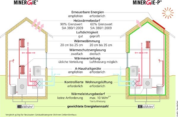 MINERGIE® ist ein Qualitätslabel für neue und modernisierte Gebäude. Die Marke wird von der Wirtschaft, den Kantonen und dem Bund gemeinsam getragen und ist vor Missbrauch geschützt.Im Zentrum steht der Komfort – der Wohn- und Arbeitskomfort von Gebäudenutzern. Ermöglicht wird dieser Komfort durch eine hochwertige Bauhülle und eine systematische Lufterneuerung.